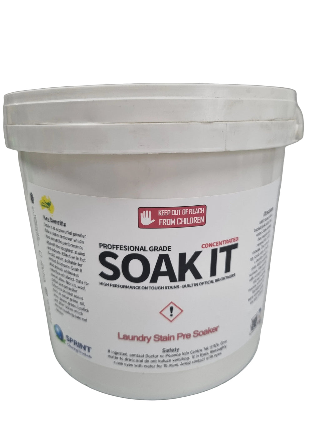For tenacious stains, soak in a sink or bucket with Soak It for 30 minutes and then add into your washing in normal fashion. Always check for colourfastness first by soaking or pre-treating a hidden part of the garment. Items which are colourfast in normal washing may run. Soak colours separately from whites. Only use on washable colourfast fabrics.