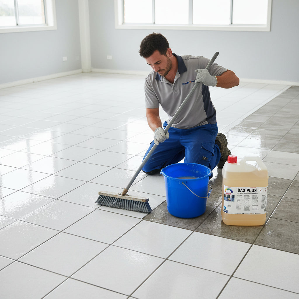 A powerful blend of cleaning agents and acids for renewing concrete & tiled surfaces. Dax Plus removes a thin layer, which then buffs surfaces back to original condition.