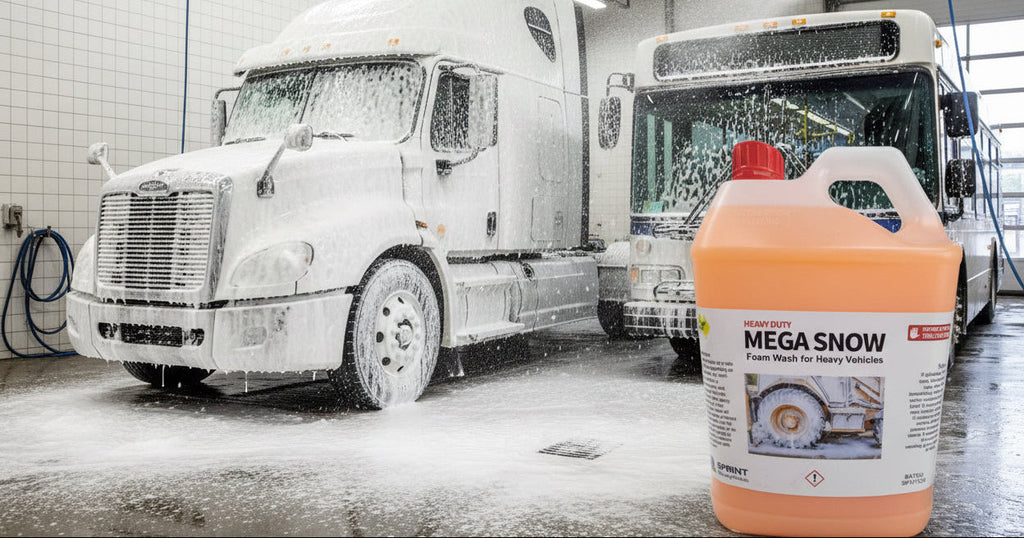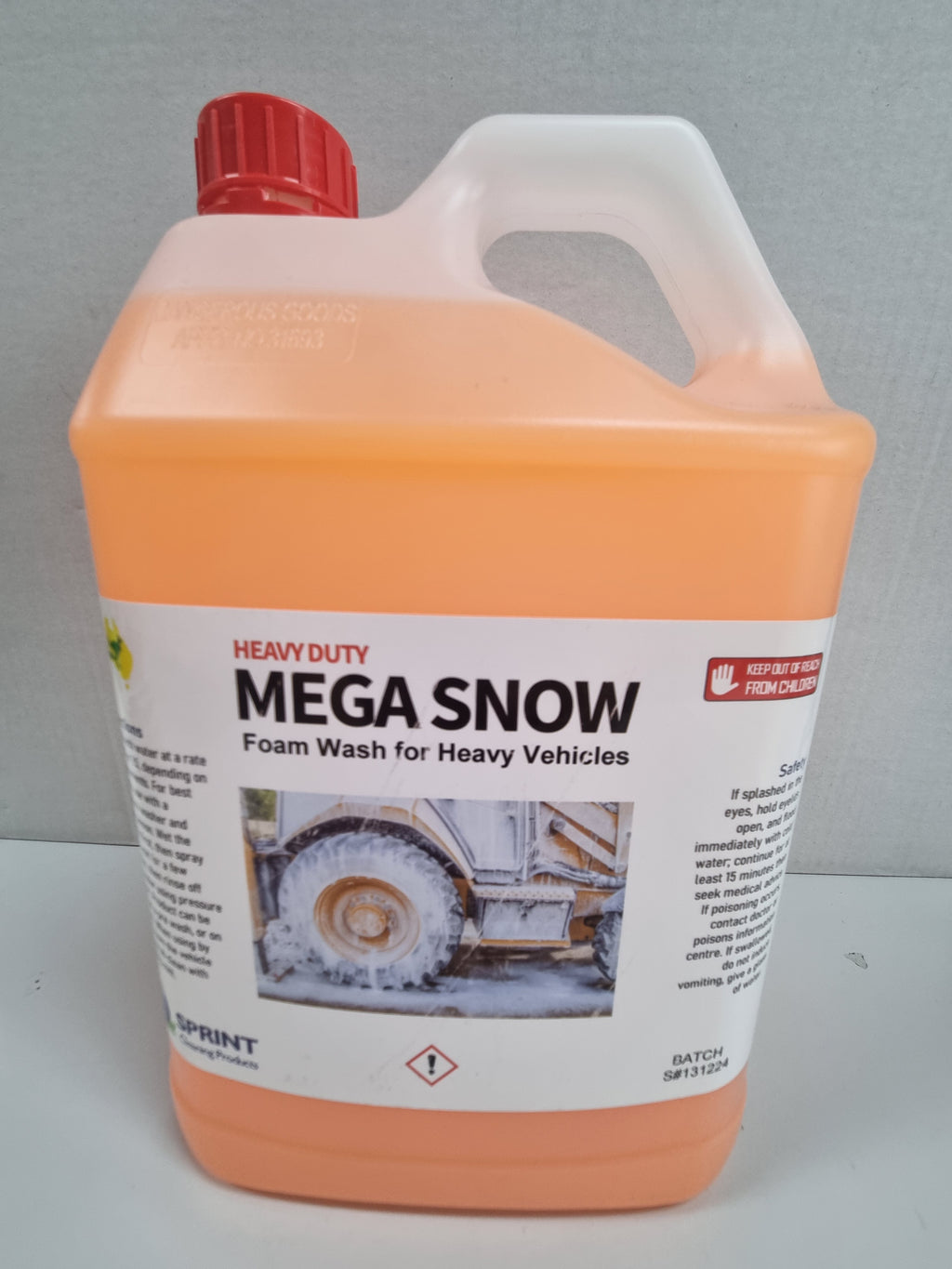 Mega Snow is a concentrated 'spray-on rinse-off' foam wash, designed to penetrate through the toughest road grimes, grease and dirt. Foam wash enables you to clean your heavy vehicle quicker and with ease.